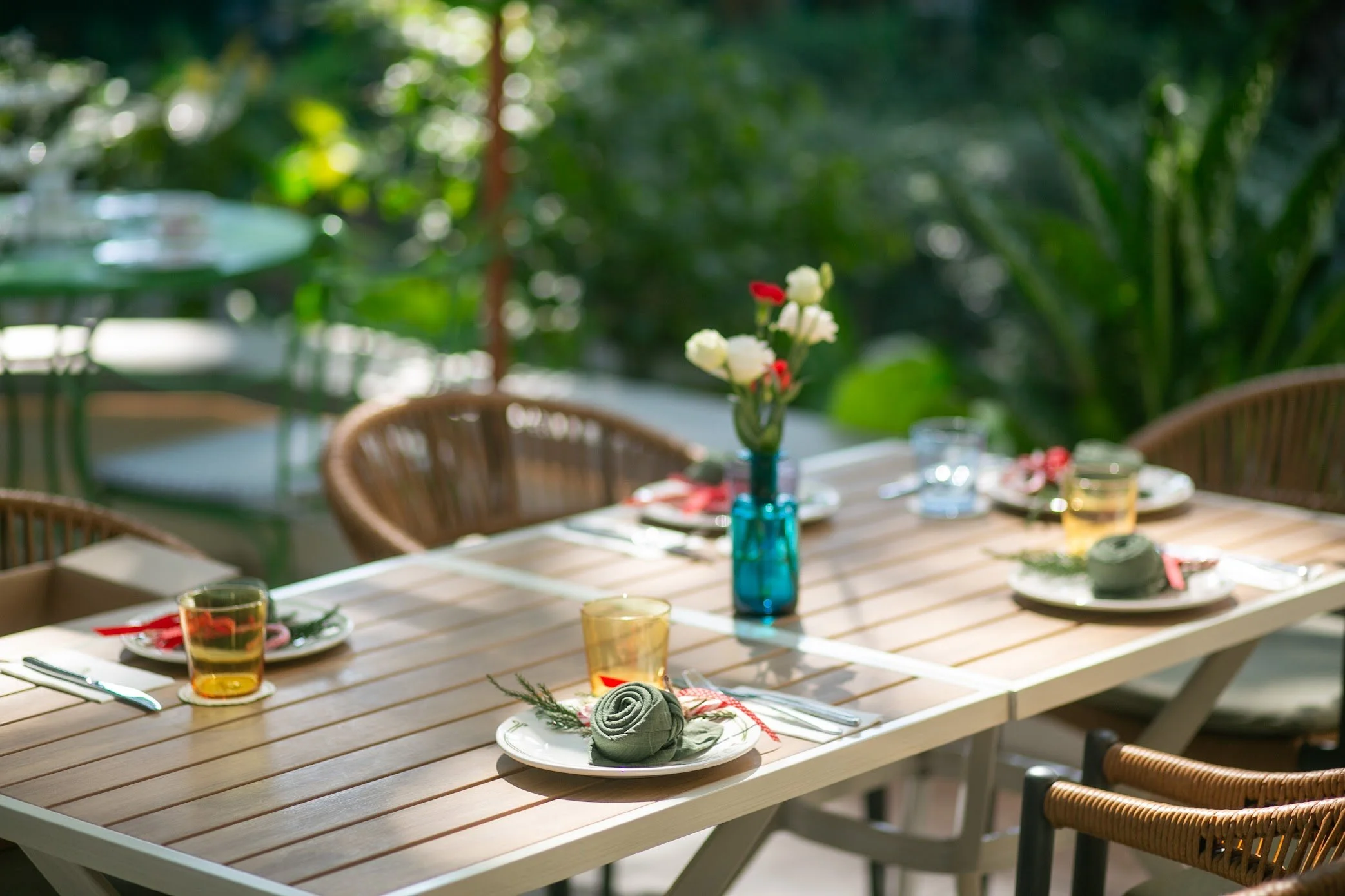 The garden is our open-air, shaded by old rain trees and filled with the scent of herbs.
